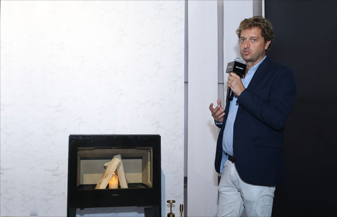 隨著主持人的開場介紹,活動正式展開。遠道而來的意大利AK47 聯(lián)合創(chuàng)始人兼銷售總監(jiān)芭芭拉女士、西班牙Hergom市場總監(jiān)German先生,意大利PALLZZETTI市場總監(jiān)Paolozulian先生向現(xiàn)場來賓們介紹了他們引以為豪的壁爐產(chǎn)品。