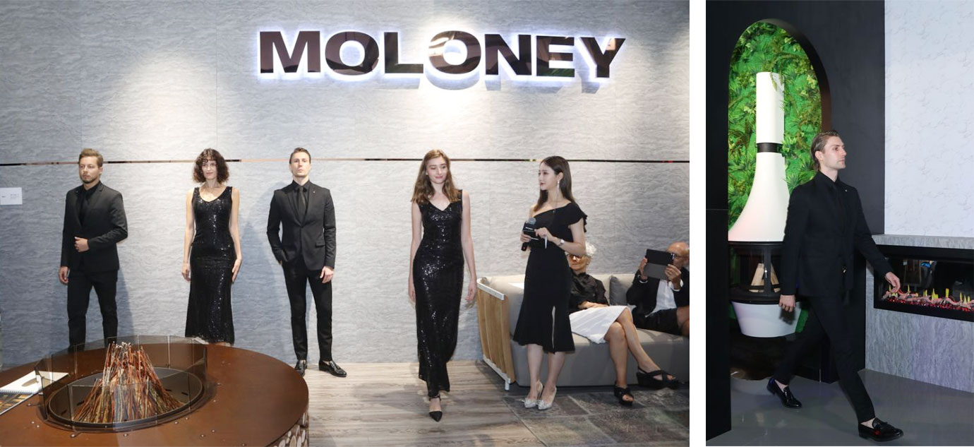 為了由內(nèi)而外地展示時尚精神,此次莫洛尼展位設(shè)計引入了“時裝秀”的概念,為每一個閃耀奪目的壁爐產(chǎn)品定制了專屬櫥窗展示空間,令其如模特般在秀場上綻放最自信而優(yōu)雅的姿彩,而“尋找最I(lǐng)N 的莫洛尼”活動更是通過精心設(shè)置的環(huán)節(jié)引爆全場。
