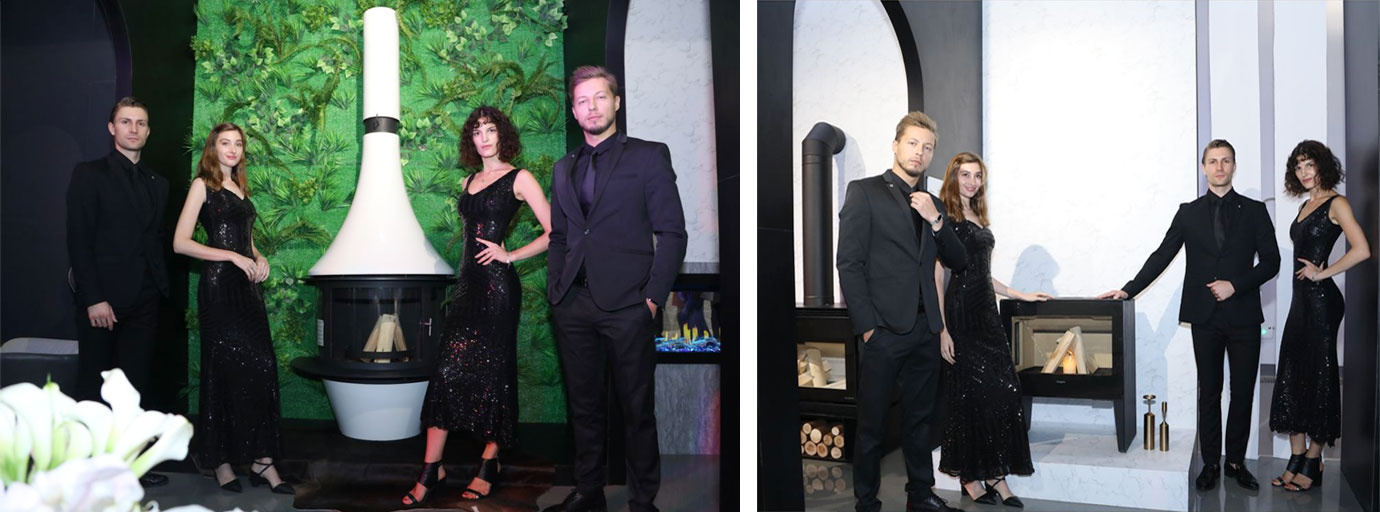 緊隨著?四位嘉賓的介紹,外籍模特從活動場地中間——亦是此次AK47的展品之一Zero圓形壁爐兩側(cè)相向而行,與各款產(chǎn)品互動演繹,以曼妙的身姿詮釋壁爐的藝術(shù)氣質(zhì),帶領(lǐng)來賓一一了解每款產(chǎn)品的精妙獨到之處。